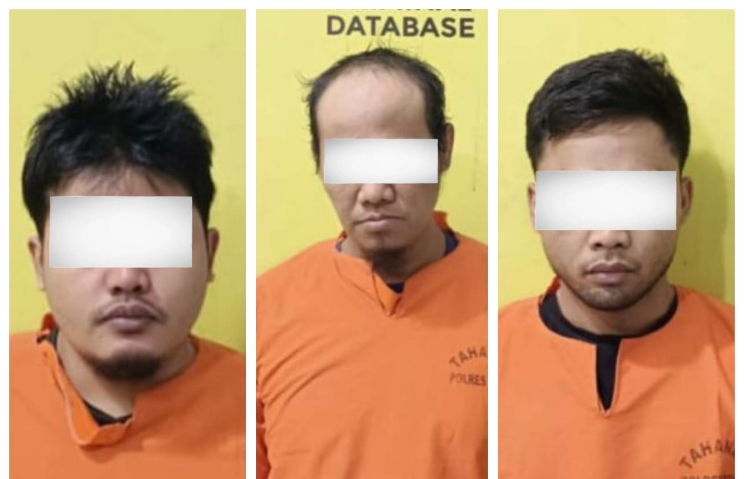 AJ alias Agus (33 tahun), alamat Jln Salak, Kepenghuluan Suka maju, Kecamatan Bagan Sinembah, Kabupaten Rohil. AS alias Arif (26 tahun), alamat Desa Tanjung Mulia Kecamatan Medan dan beralamat di Jln Jeruk Kepenghuluan Suka Maju Kecamatan Bagan Sinembah Kabupaten Rohil dan ESP alias Edi 41 tahun, alamat Jln Anas Ma’mun, Kepenghuluan Suka Maju, Kecamatan Bagan Sinembah, Kabupaten Rokan Hilir. bersama barang bukti 18 paket BB sabu di amankan.