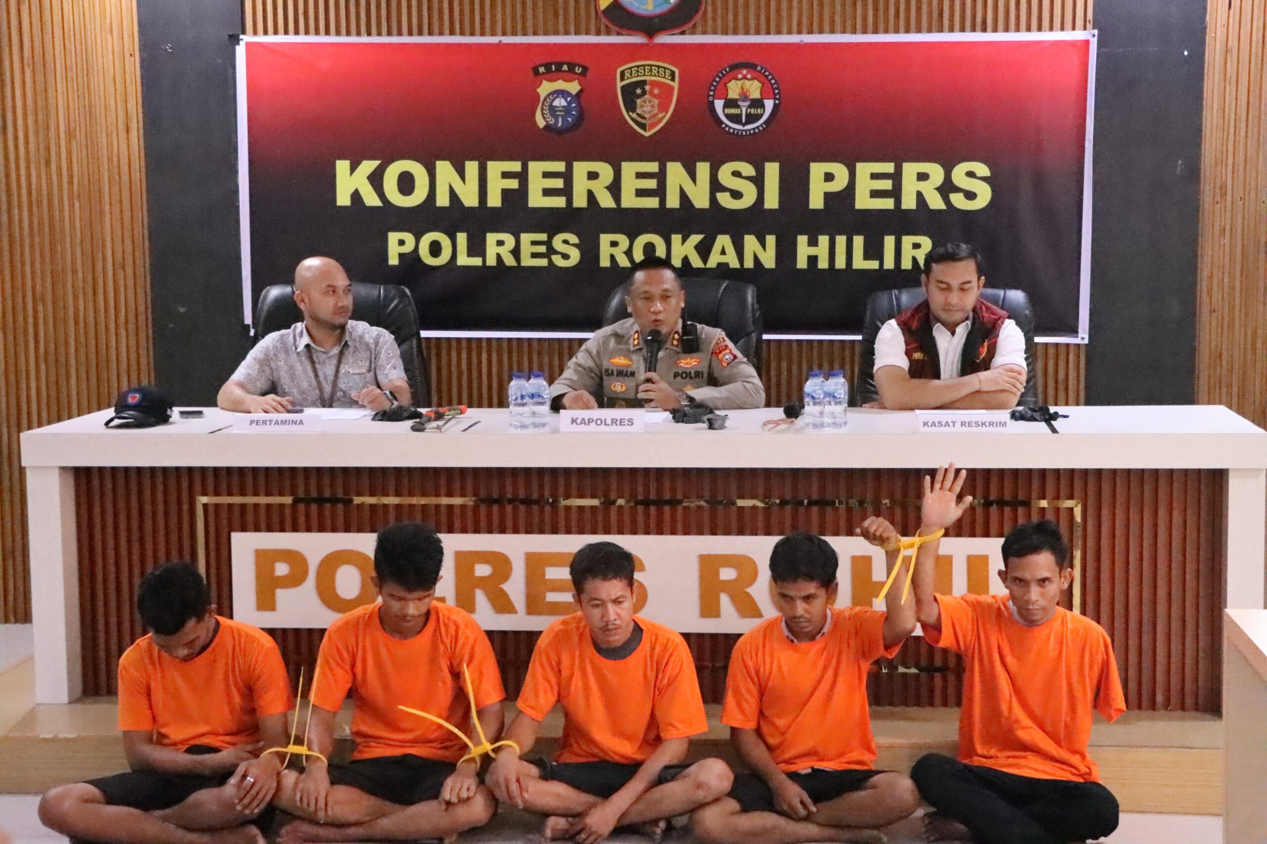 Kapolres Rokan Hilir, AKBP Isa Imam Syahroni, S.I.K., M.H., dalam konferensi pers menjelaskan bahwa pengungkapan ini merupakan hasil kerja keras tim Sat Reskrim Polres Rokan Hilir setelah melakukan penyelidikan intensif terhadap laporan gangguan produksi di sejumlah sumur milik PT. PHR.