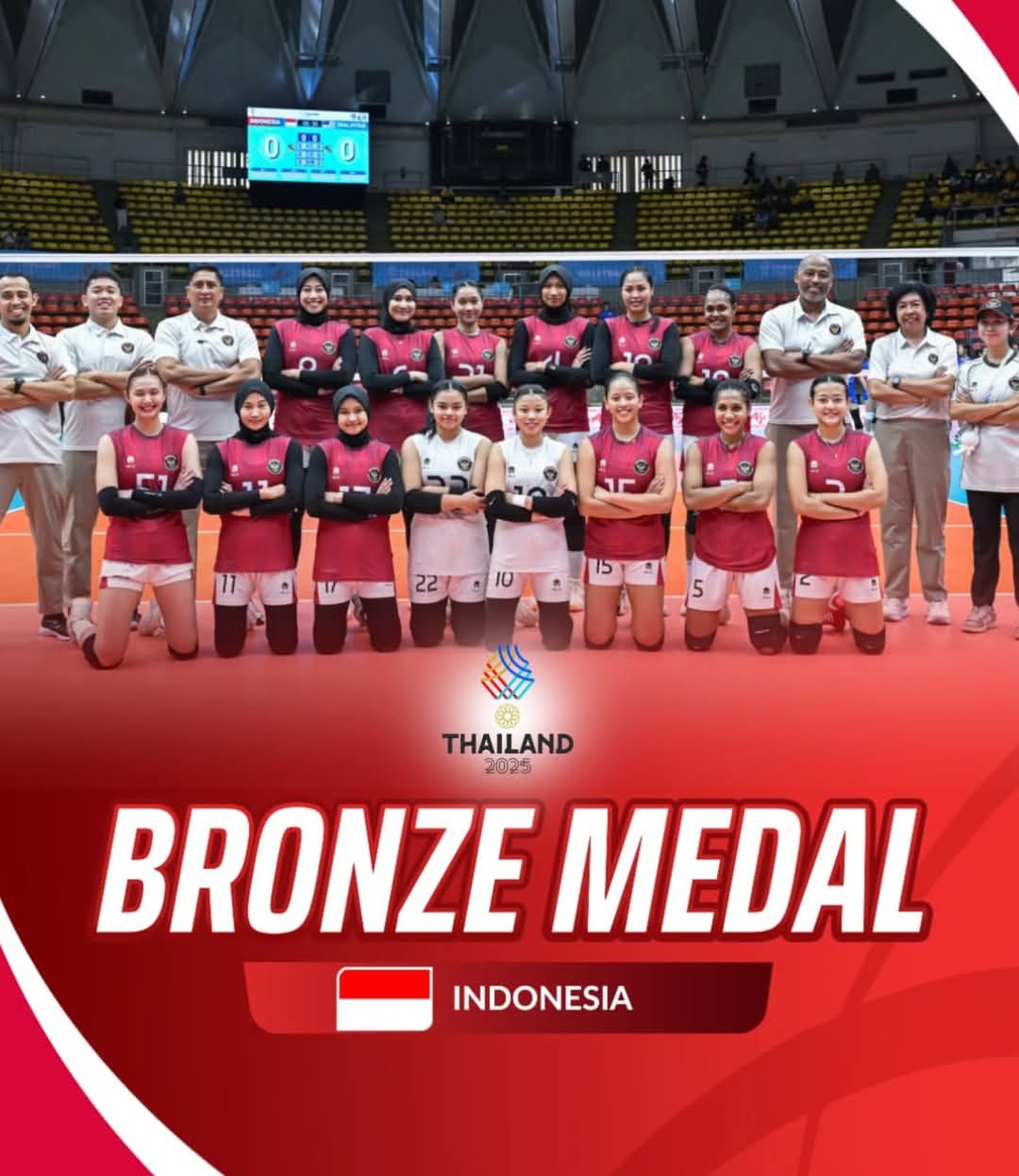 Dengan demikian, Timnas Voli Putri Indonesia berhasil menyumbangkan medali perunggu yang mengenalkan Indonesia diurutan kedua perolehan medali sea games 2025 di Thailand.