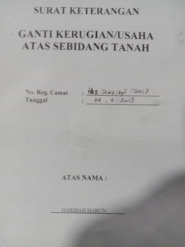 Diharapkan kepada siapa saja yang menemukan Surat Tanah.dengan nomor tersebut bisa diantarkan langsung ke alamat Habibah Harun.
