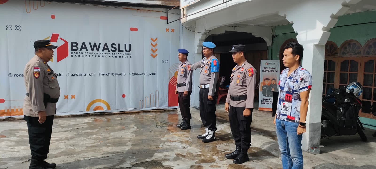 Bertugas Standby dan Sterilisasi Bawaslu Rohil, Padal PAM Polres Rohil Gelar Apel Pagi Personel