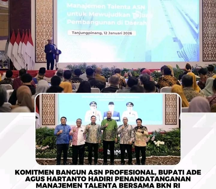 Kepulauan Riau, Kompas 1 net – Bupati Indragiri Hulu, Ade Agus Hartanto, menegaskan komitmennya dalam memperkuat tata kelola birokrasi yang semakin profesional, adaptif, dan berbasis kompetensi. Hal ini ditunjukkan melalui kehadirannya pada Penandatanganan Komitmen Bersama Penerapan Manajemen Talenta Instansi oleh Kepala Daerah se-Provinsi Riau dan Provinsi Kepulauan Riau bersama Kepala Badan Kepegawaian Negara (BKN) RI.