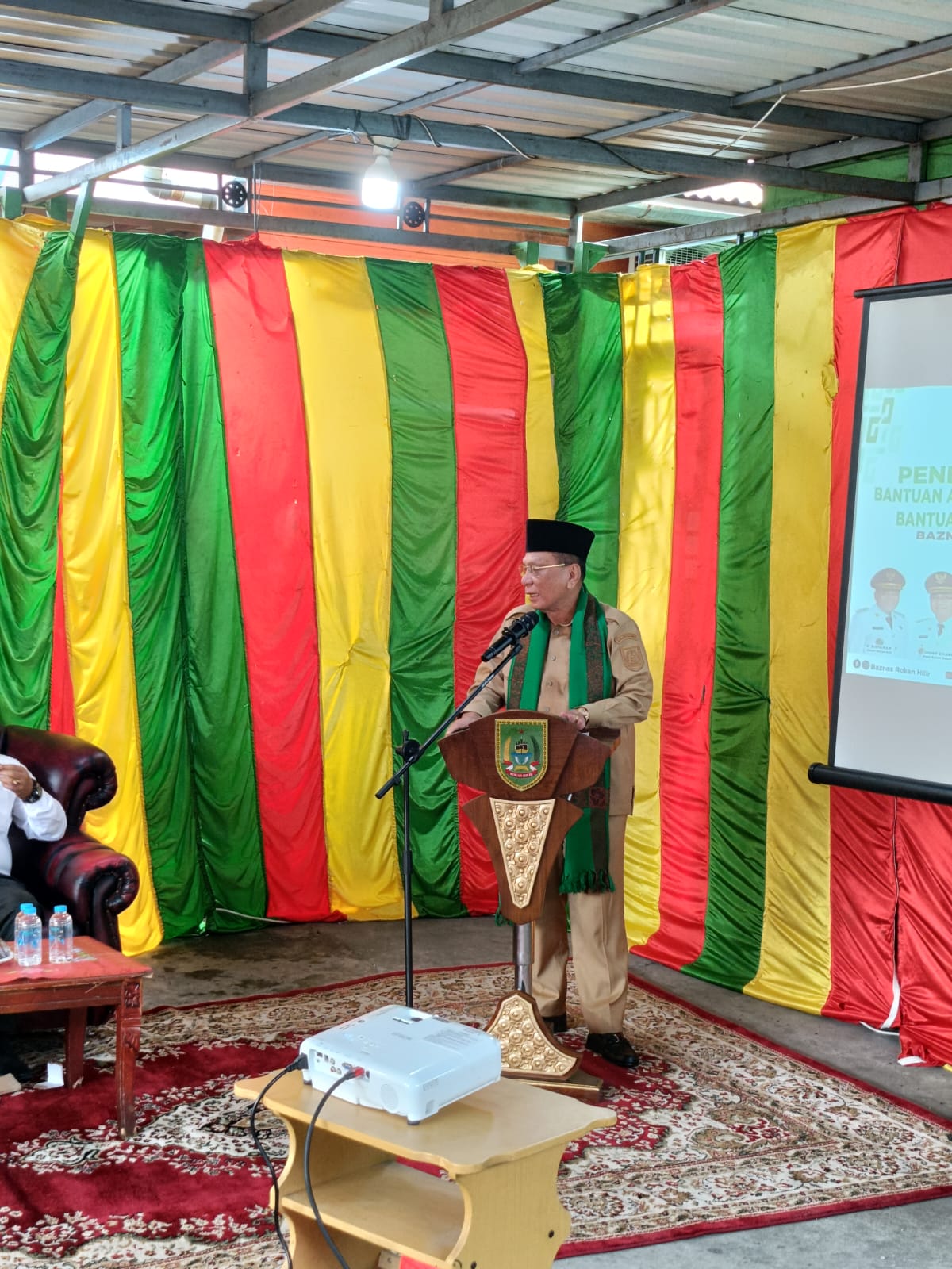 Ketua Baznas Kabupaten Rokan Hilir, Ustadz Jefrey, dalam sambutannya menyampaikan rasa syukur atas kehadiran Bupati Rokan Hilir beserta jajaran, seraya mendoakan agar kepemimpinan daerah senantiasa diberikan kesehatan, keberkahan, dan kekuatan dalam mengemban amanah pembangunan menuju terwujudnya Kabupaten Rokan Hilir yang baldatun thayyibatun wa rabbun ghafur.