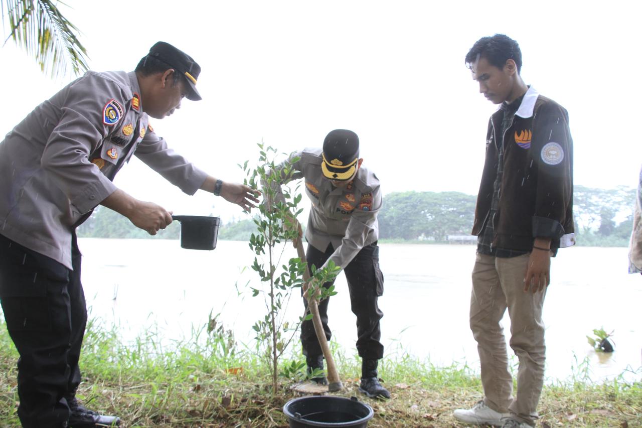 Cegah Abrasi di Tepian Sungai Indragiri, Polres Inhu dan Bem ITB Gelar Penanaman Pohon Bersama Forkopimda