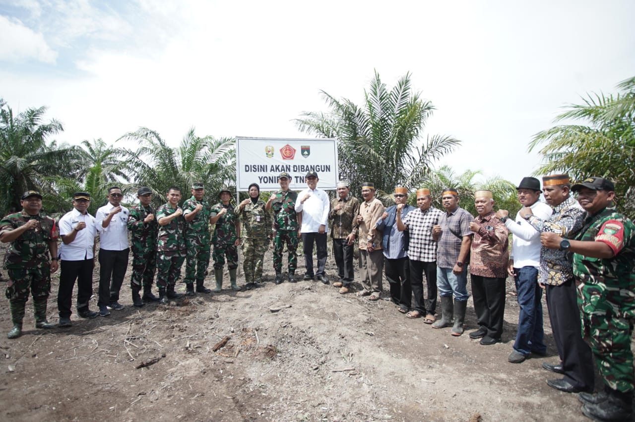 Dalam peninjauan tersebut, rombongan melihat langsung kondisi lahan yang akan digunakan sebagai lokasi pembangunan Yon TP 953/Harimau Rawa.