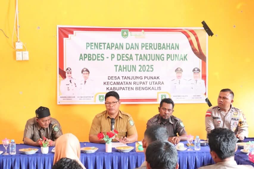 Desa Tanjung Punak, Rupat ,Kompas 1 net – Pemerintah Desa Tanjung Punak, Kecamatan Rupat Utara, Kabupaten Bengkalis, menggelar rapat resmi Penetapan dan Perubahan Anggaran Pendapatan dan Belanja Desa (APBDes-P) Tahun Anggaran 2025 pada Senin, 24 November 2025. Kegiatan ini berlangsung di Balai Pertemuan Desa dan dihadiri oleh seluruh unsur pemerintahan desa.