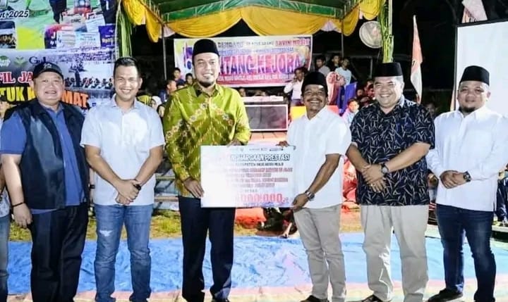 Kehadiran Bupati malam itu tidak hanya sekedar datang. Ia turut menyerahkan bonus senilai 20 juta dari pemerintah daerah kepada Kepala Desa Erwin selaku pengurus sampan jalur.