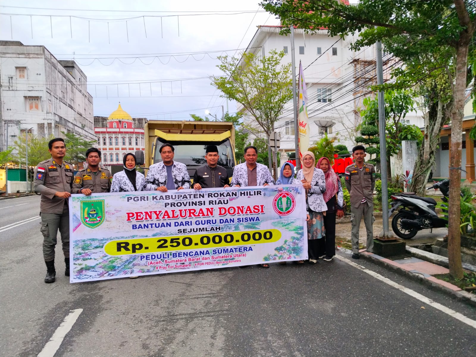 Bantuan tersebut merupakan hasil penggalangan dana dari guru dan siswa se-Kabupaten Rokan Hilir yang dikoordinasikan melalui PGRI Rohil. Selain dana tunai, bantuan juga dilengkapi dengan pakaian layak pakai untuk masyarakat terdampak bencana.