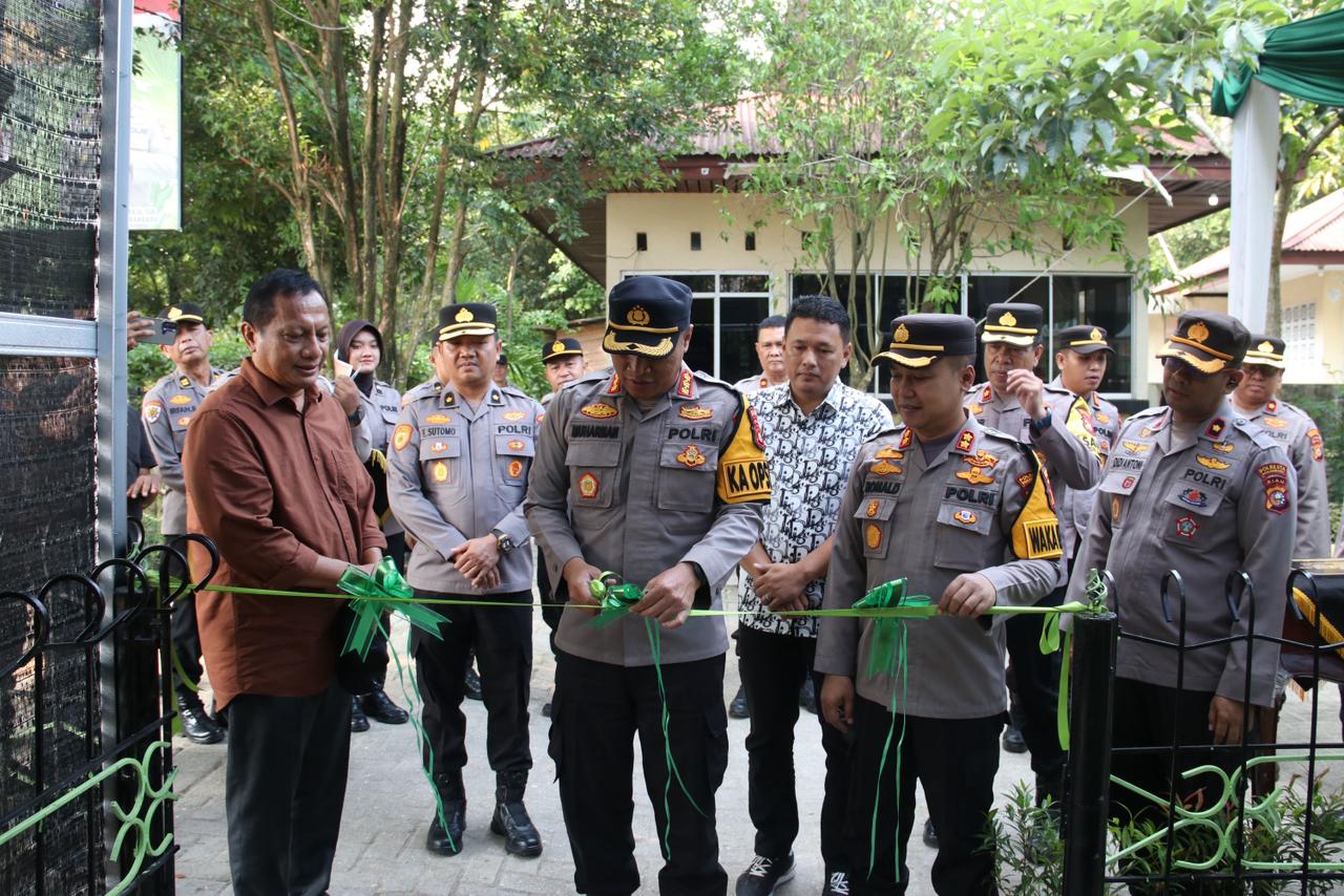 Kegiatan ditandai dengan penandatanganan prasasti dan pemotongan pita sebagai simbol peresmian, dilanjutkan dengan peninjauan lokasi Bank Pohon dan Tabung Harmoni Hijau oleh Kapolresta Pekanbaru beserta rombongan.