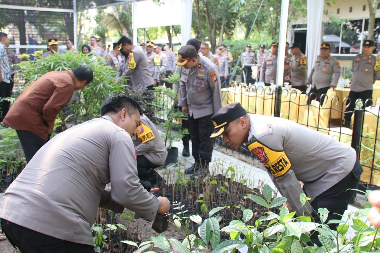 Kapolresta Pekanbaru dalam sambutannya menyampaikan apresiasi atas partisipasi seluruh personel dan tamu undangan, serta mengajak seluruh pihak untuk bersama-sama menjaga kelestarian lingkungan melalui aksi nyata penanaman pohon.
