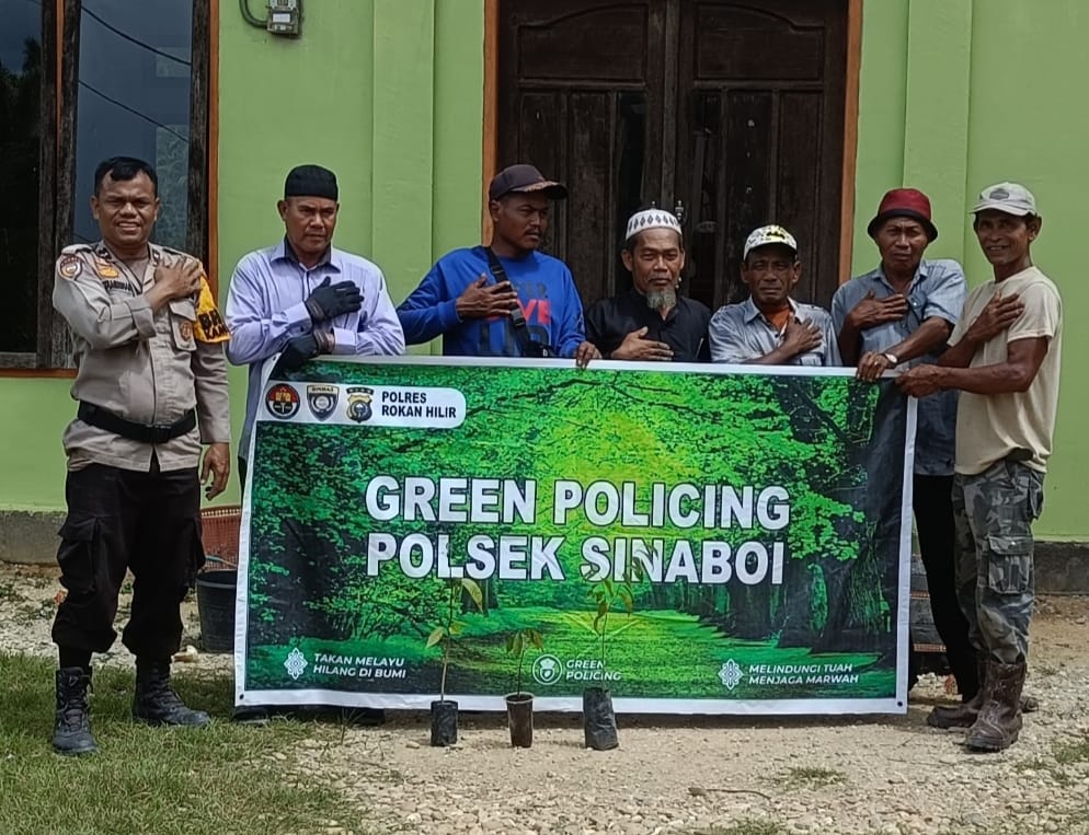 Rohil, Kompas 1 net – Personel Polsek Sinaboi P. S Kanit Bimas Aipda Riswan Efendi bersama Bhabinkamtibmas melaksanakan Program Green Policing dengan penanaman bibit pohon di wilayah Kepenghuluan Darussalam, Kecamatan Sinaboi, Kabupaten Rokan Hilir, Jumat (9/1/2025).