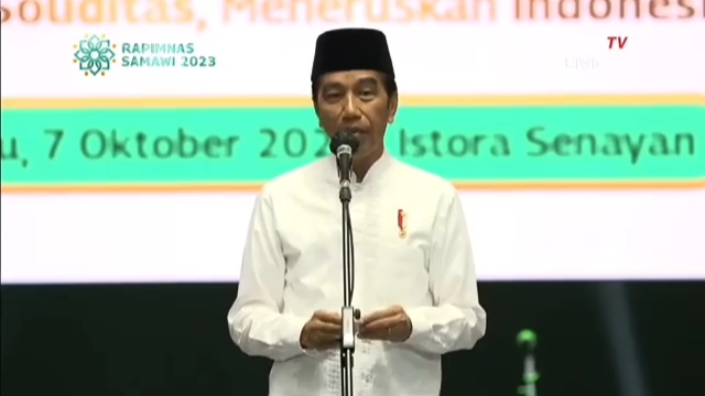 Jakarta, Kompas 1 Net- Presiden Joko Widodo Menghadiri Acara Rapat Pimpinan Nasional (Rapimnas) Solidaritas Ulama Muda Jokowi (Samawi) yang digelar di Istora Senayan, Jakarta, Sabtu, 7 Oktober 2023.