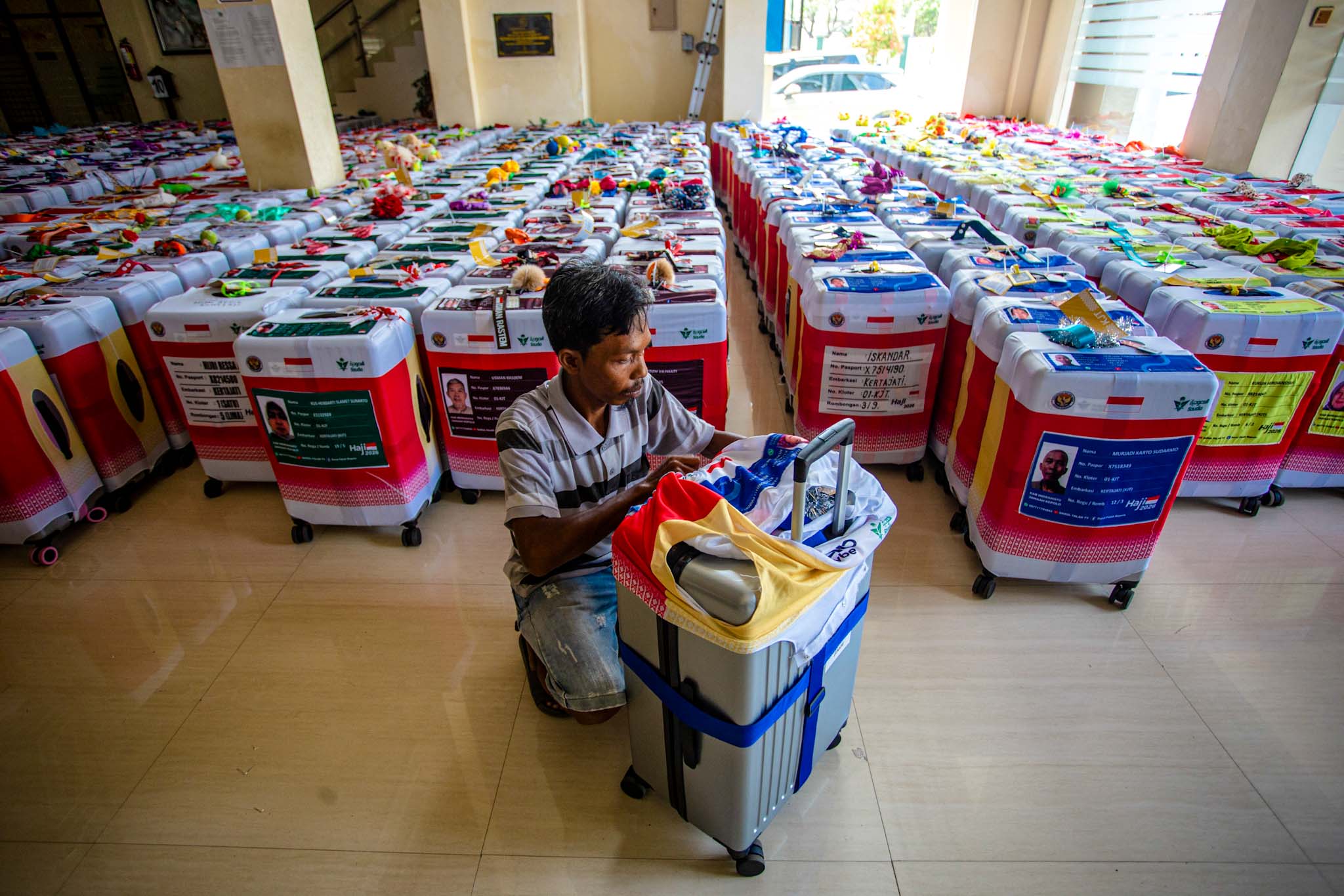 Mereka ditimbang, diperiksa, lalu disusun ulang—rapi, berbaris mengikuti kloter, seolah punya jalannya masing-masing menuju Tanah Suci.