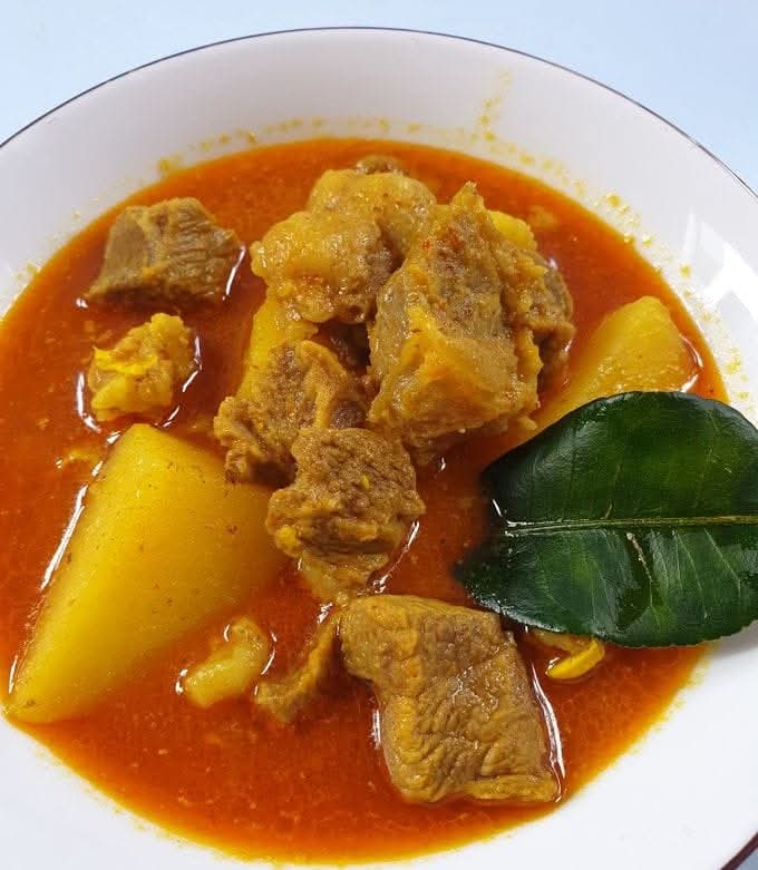 * Panaskan panci presto tumis bumbu halus dan masukan bahan tambahan seperti daun jeruk, salam, serai, lengkuas dll lalu oseng daging sampai berubah warna masukkan kentang, santan, garam gula kaldu bubuk lalu aduk aduk rata tutup panci, nyalakan api kompor besar setelah katup merah berdesis kecilkan api kompor lalu set timer 20 menit setelah timer berhenti tekan perlahan katup merah keluarkan uap di dalam panci presto sampai habis lalu buka panci dan siap dihidangkan
