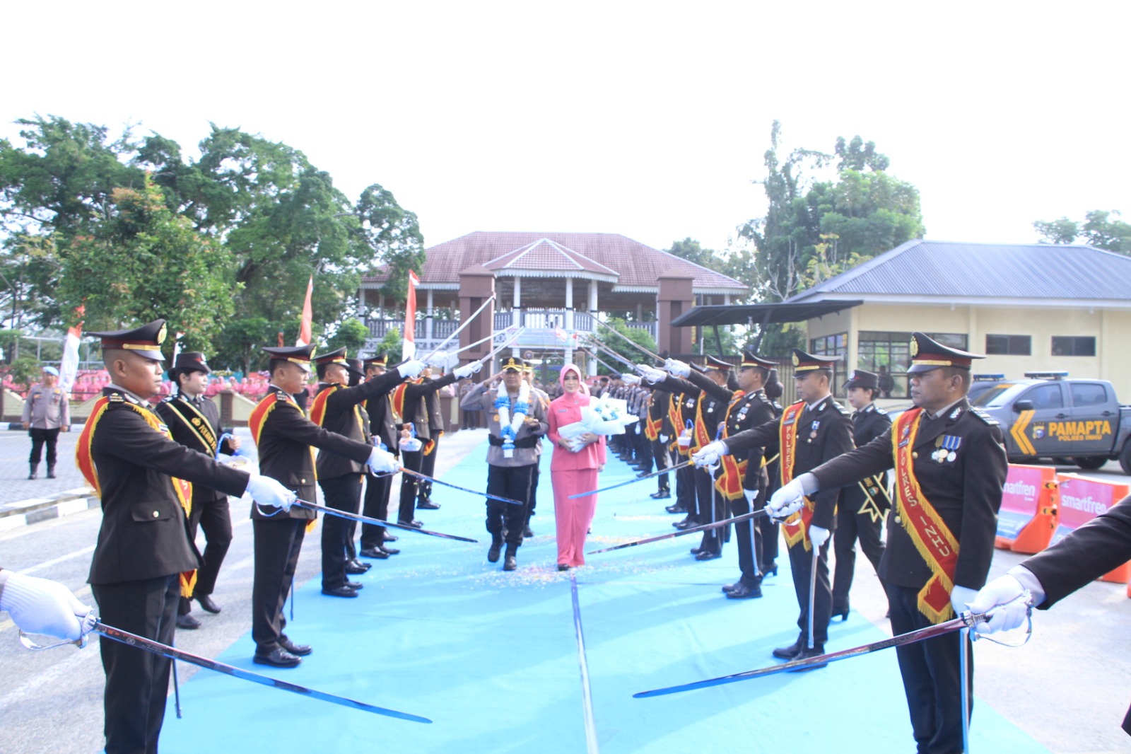Prosesi Farewell and Welcome Parade dimulai sekira pukul 08.00 WIB di Mapolres Inhu, Jalan A. Yani No. 19, Kelurahan Sekip Hulu, Kecamatan Rengat. Tradisi penyambutan berlangsung sarat nilai budaya dan kebanggaan institusi, diawali jajar hormat, pedang pora, hingga pemasangan tanjak dan tepung tawar sebagai simbol doa keselamatan serta keberkahan dalam mengemban tugas.