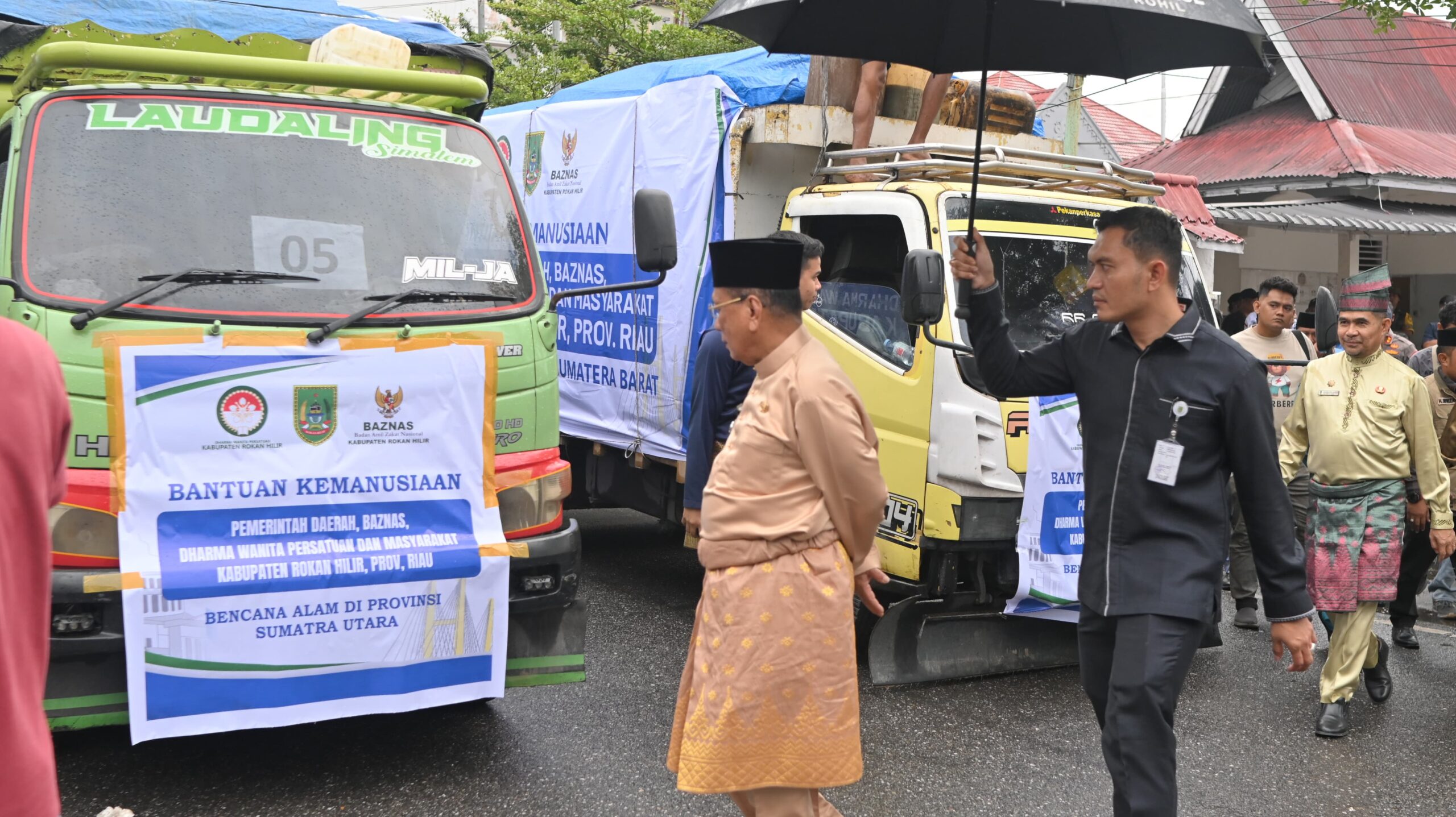 Diskominfotiks Rohil, Kompas 1 net – Pemerintah Kabupaten Rokan Hilir (Rohil) menyalurkan bantuan kemanusiaan untuk membantu masyarakat yang terdampak bencana alam di Sumatera Barat (Sumbar), Sumatera Utara (Sumut), dan Aceh. Pelepasan armada bantuan dilakukan oleh Bupati Rohil H. Bistamam di depan Mess Pemda Rohil, Jalan Perwira, Bagansiapiapi, pada Senin, 15 Desember 2025.