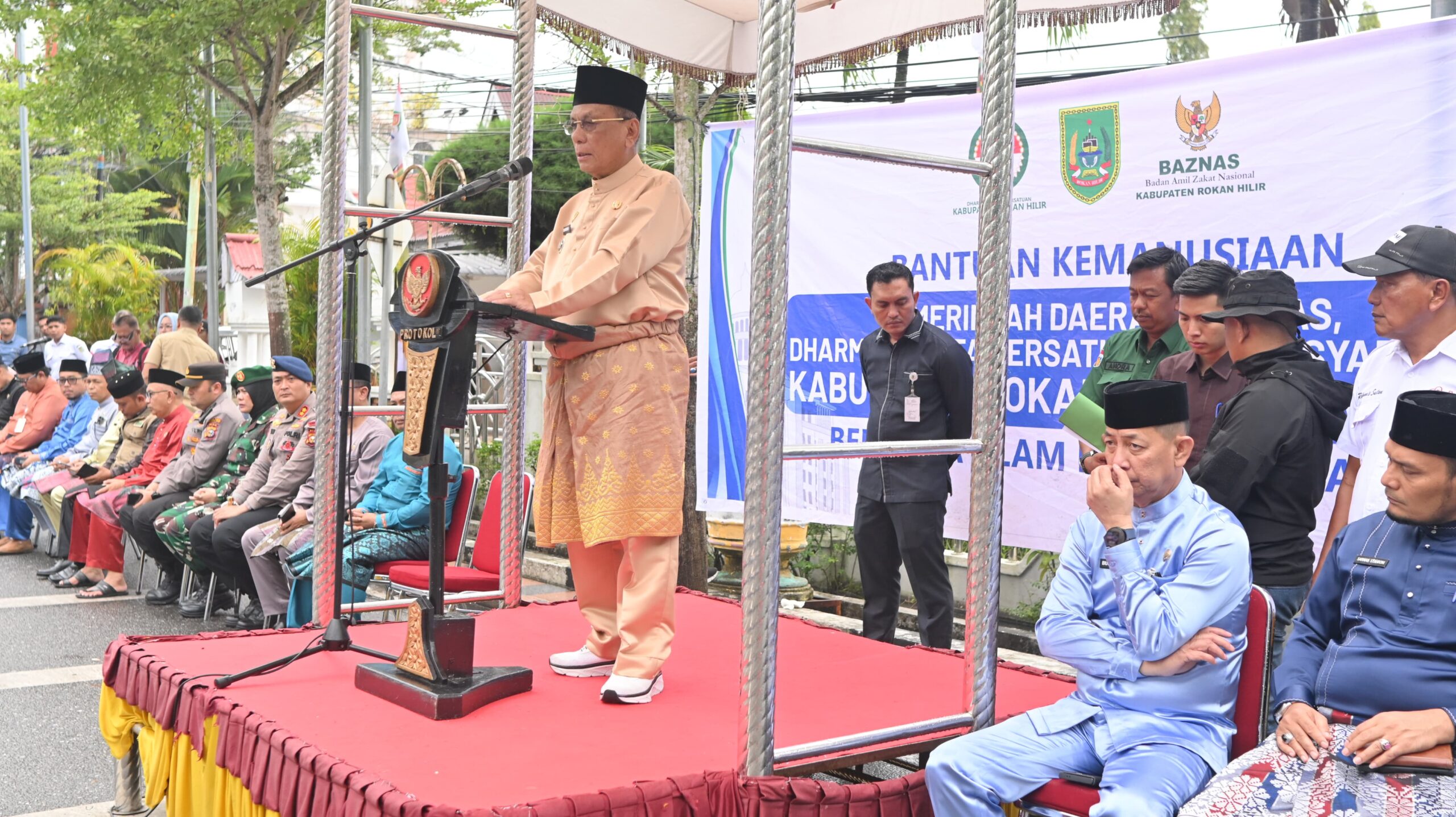 “Saya atas nama Pemerintah Kabupaten Rokan Hilir menyampaikan apresiasi dan terima kasih kepada para OPD se-Kabupaten Rokan Hilir, organisasi, perusahaan-perusahaan, serta seluruh segenap masyarakat Kabupaten Rokan Hilir yang telah berpartisipasi menyisihkan sebagian hartanya untuk bantuan sosial bencana alam Sumatera,” ujar Bupati