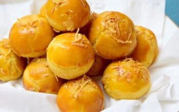 Bagi menjadi beberapa bulatan kecil ( saya jadi 17 butir) ambil 1 taruh isian dan bulatkan lagi