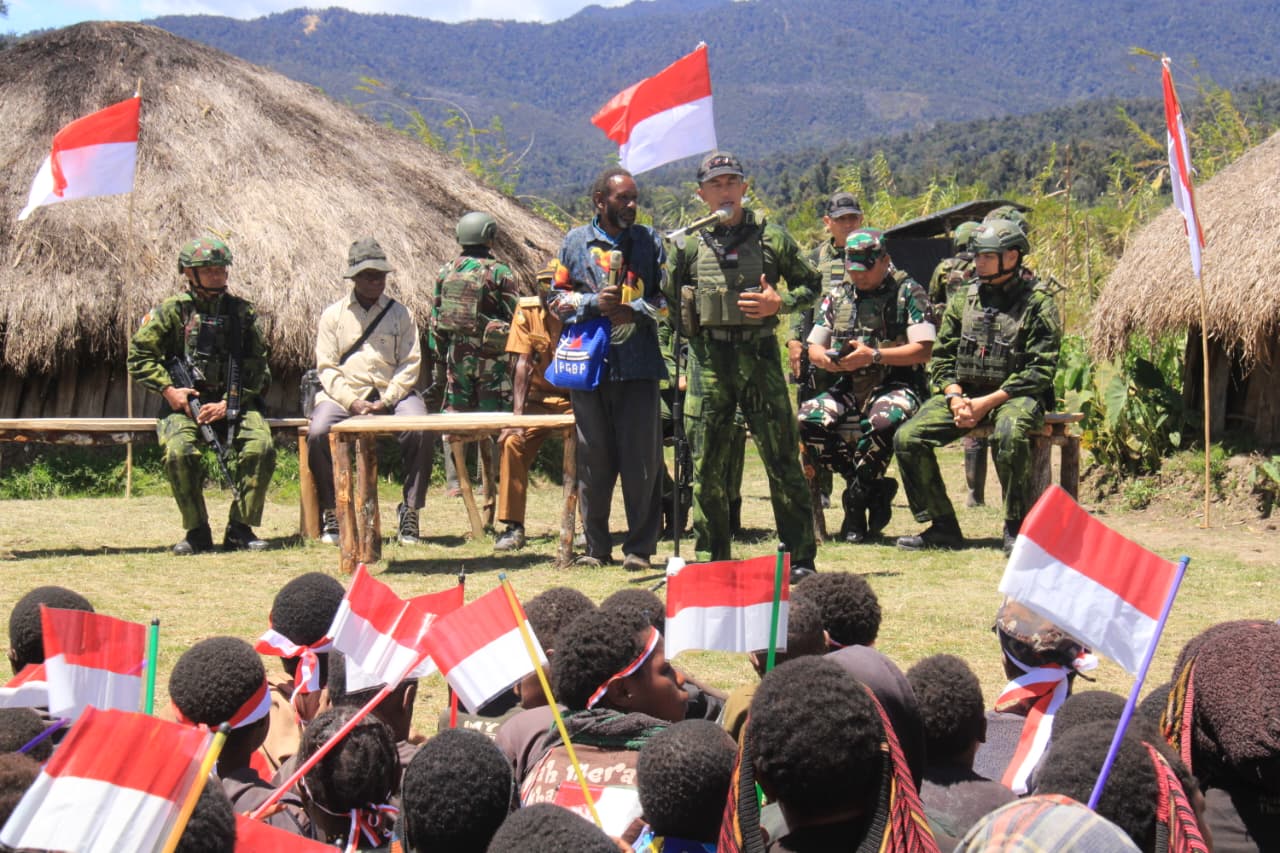Kegiatan diawali dengan pelayanan kesehatan gratis oleh tim Satgaskes Koops TNI Habema, dilanjutkan sambutan hangat dari Pangkogabwilhan III kepada masyarakat setempat.