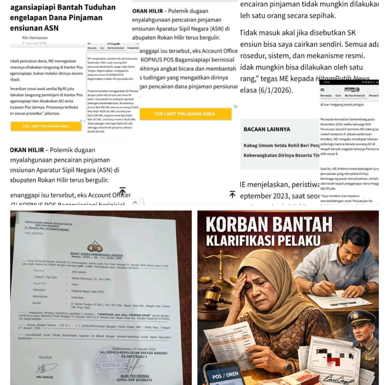 Rohil, Kompas 1 net – Pihak korban secara tegas membantah klarifikasi pelaku berinisial ME yang sebelumnya dimuat di sejumlah media daring terkait dugaan penipuan dan penggelapan dana pinjaman pensiunan ASN di Bagansiapiapi, Kabupaten Rokan Hilir’Jum’at 09/1/2026