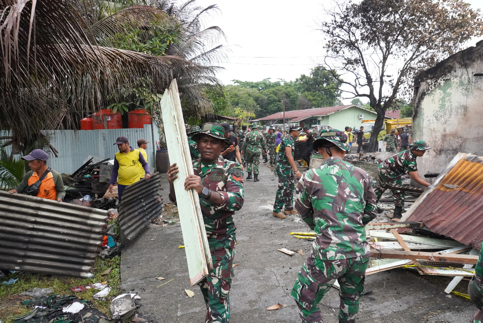 “Gotong royong ini tidak hanya fokus pada pembersihan, tetapi juga sebagai langkah awal pembangunan dan renovasi asrama agar dapat kembali difungsikan dengan aman dan layak. Kebersamaan ini menjadi kekuatan utama dalam menghadapi setiap tantangan,” ujar Danrem.