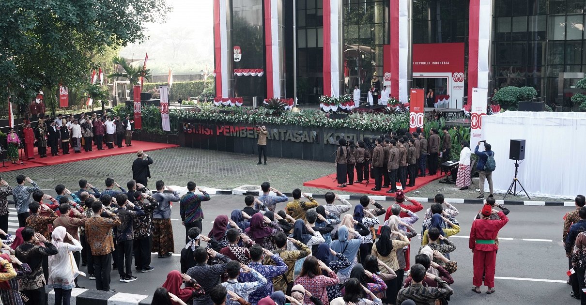 Jakarta, Kompas 1 net – Komisi Pemberantasan Korupsi (KPK) menggelar upacara peringatan Hari Ulang Tahun (HUT) ke-80 Kemerdekaan Republik Indonesia (RI) di halaman Gedung Merah Putih, Jakarta, Minggu (17/8). Diikuti seluruh Pimpinan KPK, Dewan Pengawas KPK, pejabat struktural, dan lebih dari 1.900 pegawai KPK, upacara dipimpin langsung oleh Ketua KPK, Setyo Budiyanto.