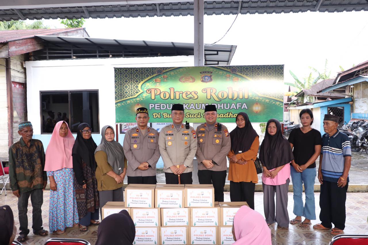 Rohil , Kompas 1 net – Dalam rangka menyemarakkan Bulan Suci Ramadhan 1447 H, Polres Rokan Hilir lagi lagi melaksanakan kegiatan sosial bertajuk Polres Rohil Peduli Kaum Dhuafa dengan menyalurkan bantuan paket sembako kepada masyarakat kurang mampu, hari ini di wilayah hukum Polsek Bangko, Selasa (03/03/2026) sore.