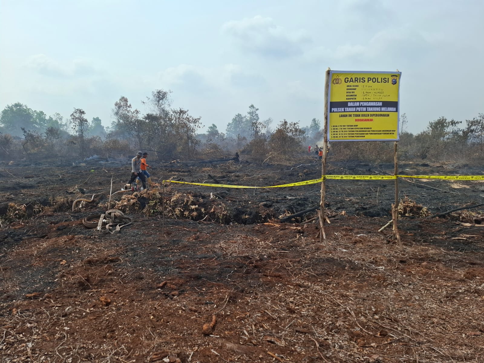 Saat ini polisi sudah memasang plang pemberitahuan dan police line untuk tidak membakar hutan dilokasi tersebut. Kita berharap bisa secepatnya didinginkan sampai 100 persen.