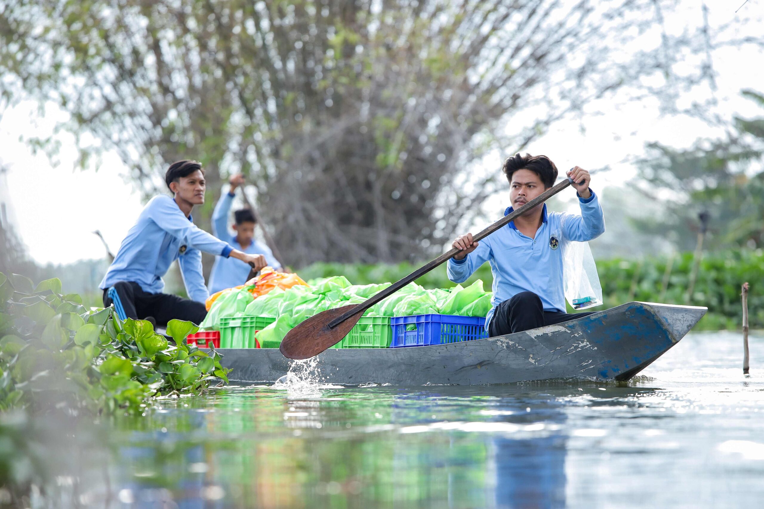 Dalam foto terlihat petugas Satuan Pelayanan Pemenuhan Gizi (SPPG) Dapur Carnis mendistribusikan paket Makanan Bergizi Gratis menggunakan perahu di Kecamatan Deket, Lamongan. Sebanyak 600 paket MBG disalurkan kepada penerima manfaat yang terdiri dari siswa di 35 sekolah serta ibu hamil di tujuh desa terdampak banjir.