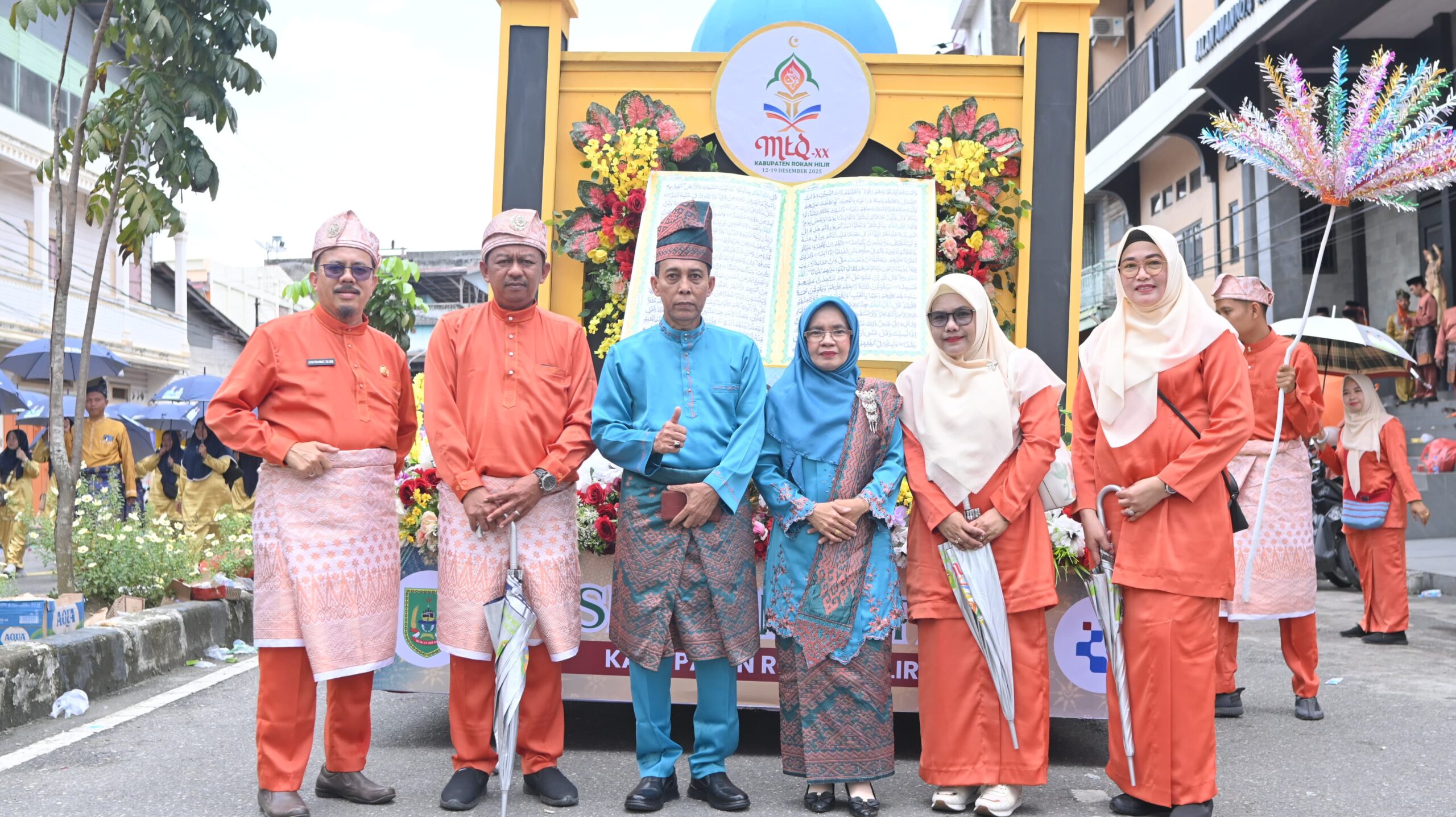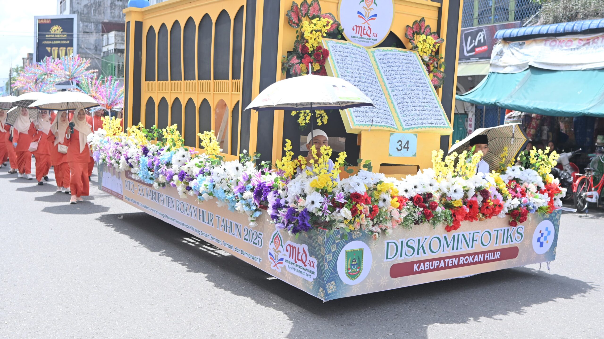 Pada kesempatan tersebut, Diskominfotiks Rohil menampilkan miniatur masjid dengan arsitektur khas Timur Tengah sebagai ikon utama barisan. ditambah lagi barisan dari pakaian adat yang memberikan bingkisan kepada bupati Rokan Hilir H Bistamam.