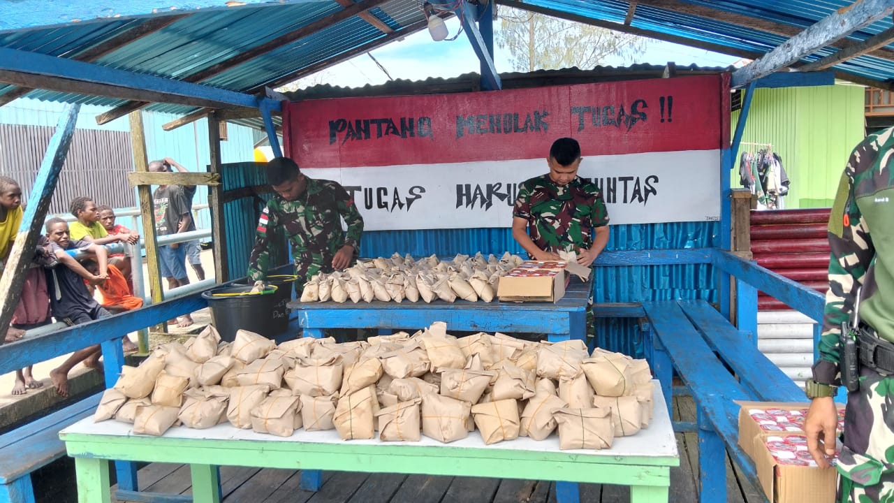 Kegiatan pembagian nasi bungkus gratis ini merupakan salah satu dari berbagai kegiatan sosial yang dilaksanakan oleh Satgas Yonif 123/Rajawali selama masa penugasan di wilayah Fayit. Satgas Yonif 123/Rajawali berkomitmen untuk terus memberikan kontribusi positif bagi masyarakat di wilayah penugasan. (Pen Yonif 123/Rajawali)