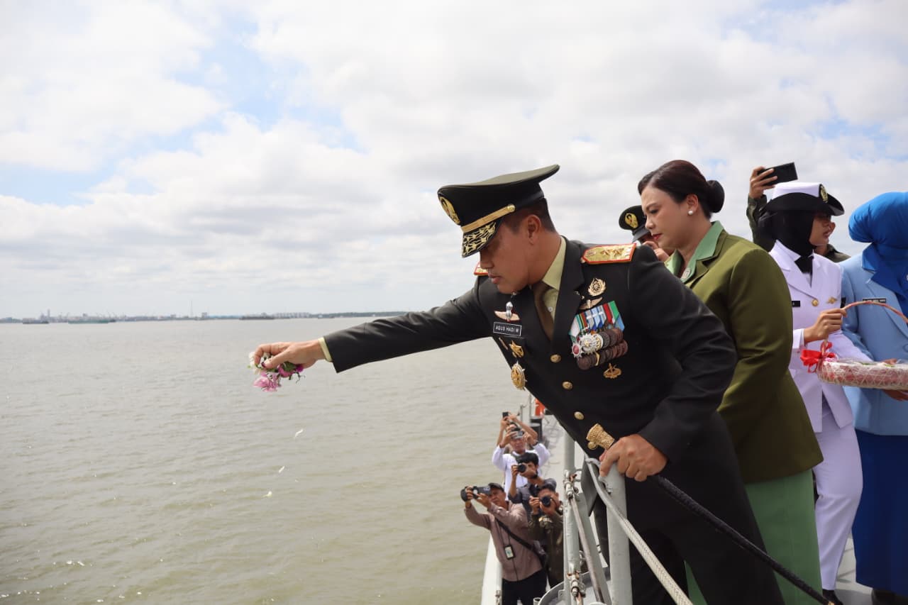 DUMAI, Kompas 1 net – Dalam rangka memperingati Hari Pahlawan Nasional tahun 2025, Pangdam XIX/Tuanku Tambusai, Mayjen TNI Dr. Agus Hadi Waluyo, S.A.P., M.M., CHRMP., memimpin kegiatan tabur bunga di atas KRI Sultan Thaha Sayfuddin wilayah Perairan Dumai, Kec. Sungai Sembilan-Kota Dumai Provinsi Riau pada Senin (10/11/2025).