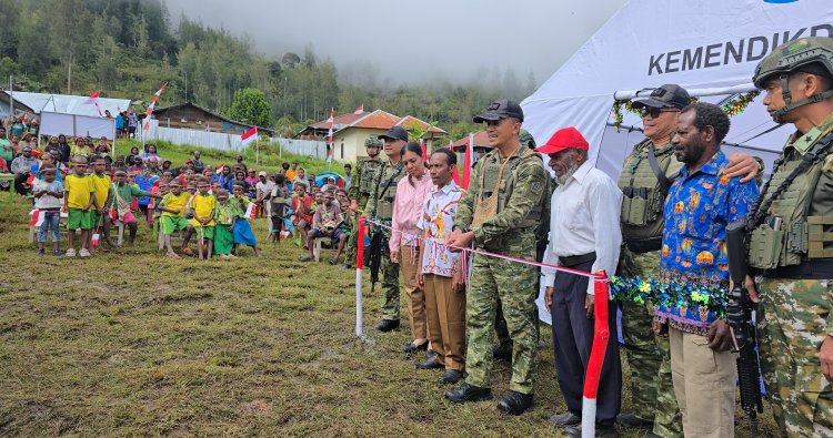 INTAN JAYA, Papua Tengah. Kompas 1 net – Pangkogabwilhan III, Letjen TNI Bambang Trisnohadi, tiba di kampung Pogapa Distrik Homeyo Kabupaten Intan Jaya, dalam rangka peresmian Pojok Baca di kampung tersebut. Kedatangan Pangkogabwilhan III disambut hangat oleh masyarakat kampung Pogapa. Pojok Baca ini merupakan salah satu upaya untuk meningkatkan literasi dan pendidikan di daerah pedalaman. (14/2/2026)