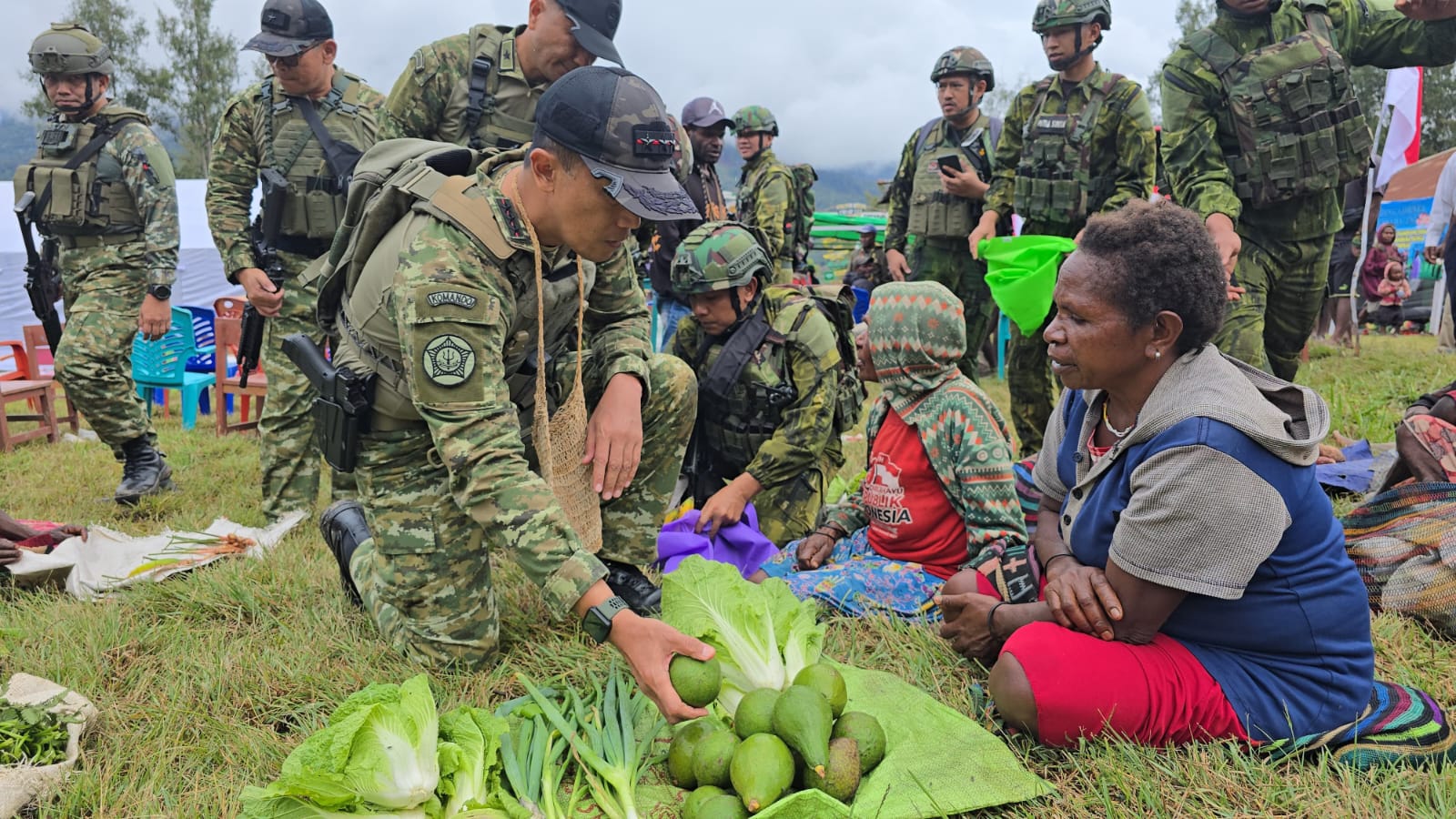 “Kami sangat berterima kasih atas kedatangan Pangkogabwilhan III dan rombongan ke kampung Pogapa. Peresmian Pojok Baca ini merupakan hadiah yang sangat berharga bagi kami, terutama anak-anak kami. Kami juga sangat senang dengan kegiatan borong hasil tani, ini sangat membantu meningkatkan perekonomian kami. Kami berharap kegiatan seperti ini dapat terus berlanjut dan membawa dampak positif bagi masyarakat kampung Pogapa.” kata Bapak Simson Holombau (68), selaku tokoh gereja kampung Pogapa.