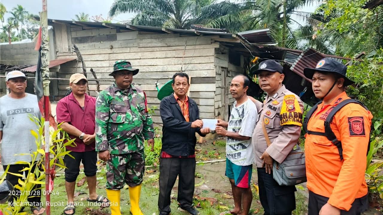 Titi Akar, Kompas 1 net — Pemerintah Desa Titi Akar bersama Badan Permusyawaratan Desa (BPD) Titi Akar, Bhabinkamtibmas, Babinsa, Kepala Dusun Makdewa, Ketua RW dan RT, serta BPBD Kecamatan Rupat Utara menyalurkan bantuan kepada warga yang terdampak bencana alam puting beliung yang terjadi pada Kamis, 27 November 2025.
