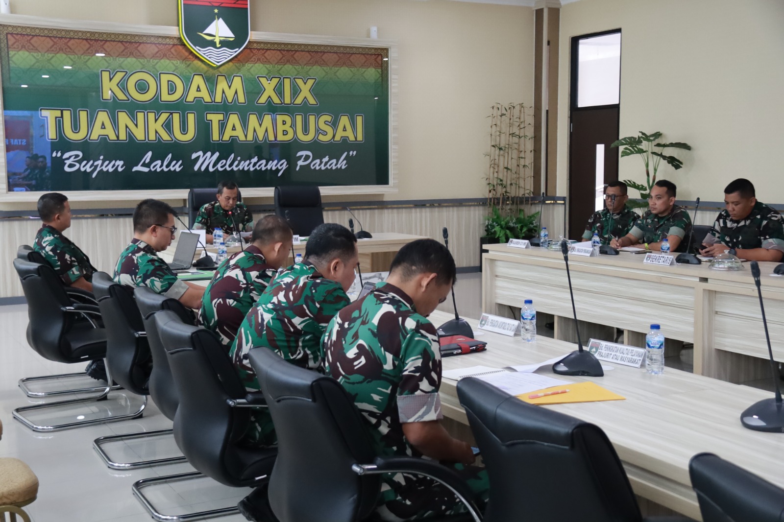 Rakor dipimpin Inspektur Kodam (Irdam) XIX/TT Brigjen TNI Totok Sutriono, S.Sos., selaku Ketua Tim Penilai Internal.