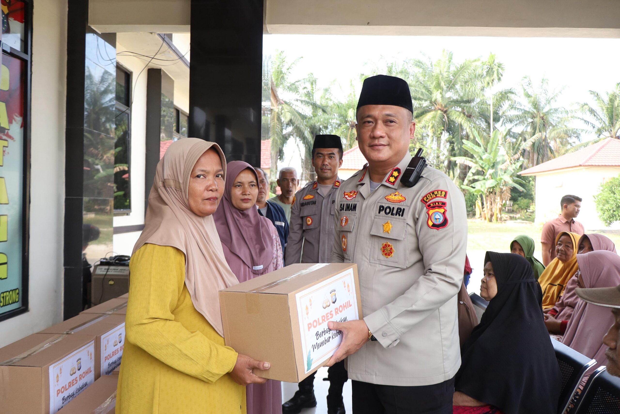 Dalam sambutannya, Kapolres Rohil menyampaikan rasa terima kasih kepada masyarakat yang telah hadir serta menegaskan bahwa kegiatan ini merupakan bentuk nyata kepedulian Polri terhadap masyarakat, khususnya di bulan suci Ramadhan.