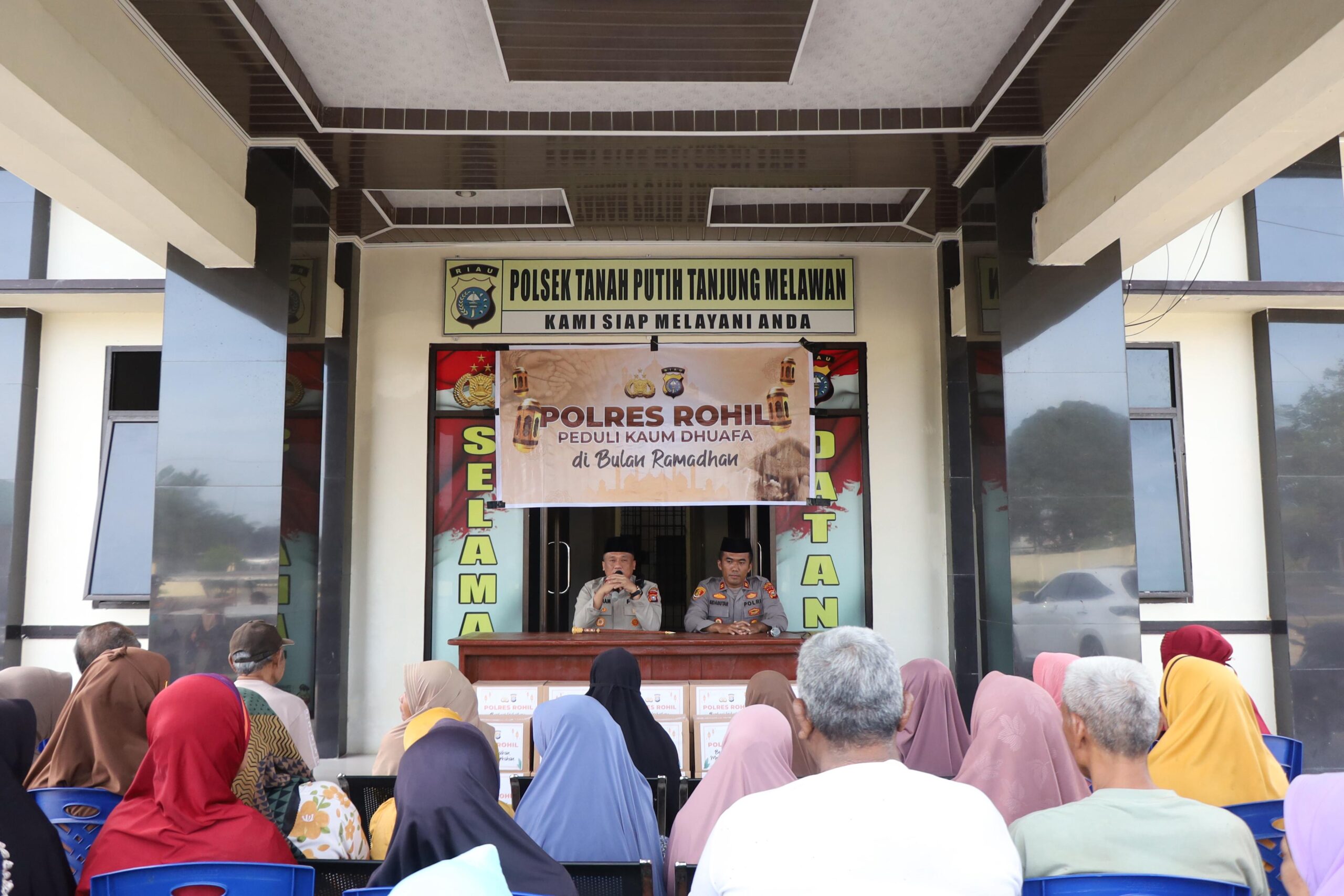 Kegiatan dipimpin langsung oleh Kapolres Rokan Hilir, Isa Imam Syahroni, dan turut dihadiri oleh para Pejabat Utama Polres Rohil, Kapolsek Tanah Putih Tanjung Melawan, serta personel Polsek setempat. Sebanyak 30 orang masyarakat kaum dhuafa menerima bantuan paket sembako dalam kegiatan tersebut.