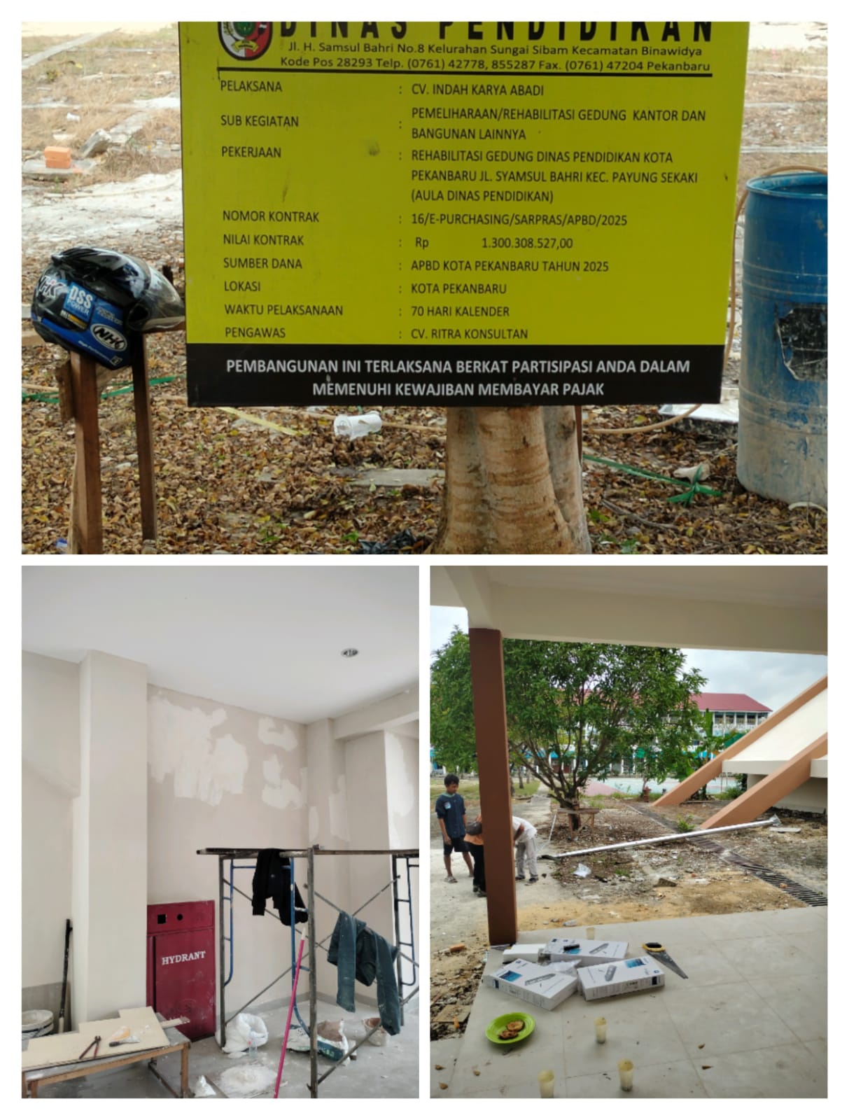 Pekanbaru, Kompas 1 net — Proyek rehabilitasi Gedung Dinas Pendidikan Kota Pekanbaru dengan nilai kontrak Rp1,3 miliar yang bersumber dari APBD Kota Pekanbaru Tahun Anggaran 2025 diduga mengalami keterlambatan penyelesaian. Hingga Selasa (6/1/2026), aktivitas pekerjaan di lokasi masih terlihat berlangsung dan belum sepenuhnya rampung.
