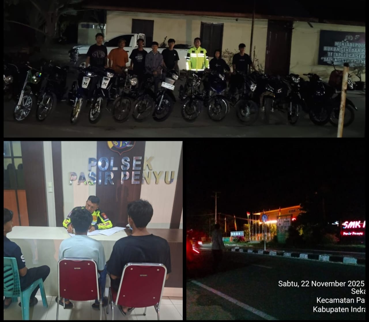 Kegiatan yang dipimpin langsung Kapolsek Pasir Penyu, KOMPOL Novia Indra, S.H., bersama sembilan personel, menyasar para pengendara yang menggunakan knalpot brong dan terlibat aksi balap liar. Dalam operasi penindakan tersebut, petugas mengeluarkan total 15 set tilang. Barang bukti yang diamankan berupa 15 unit sepeda motor, sementara tidak ada STNK maupun SIM yang disita dalam kegiatan kali ini.
