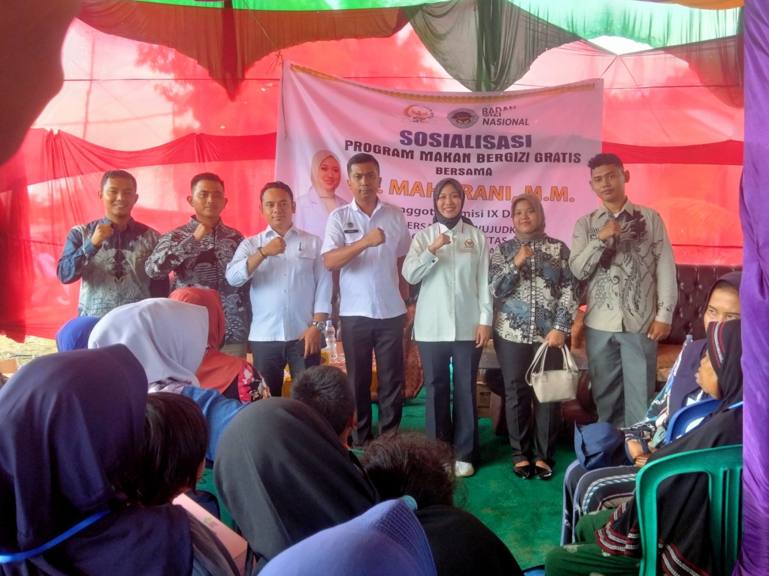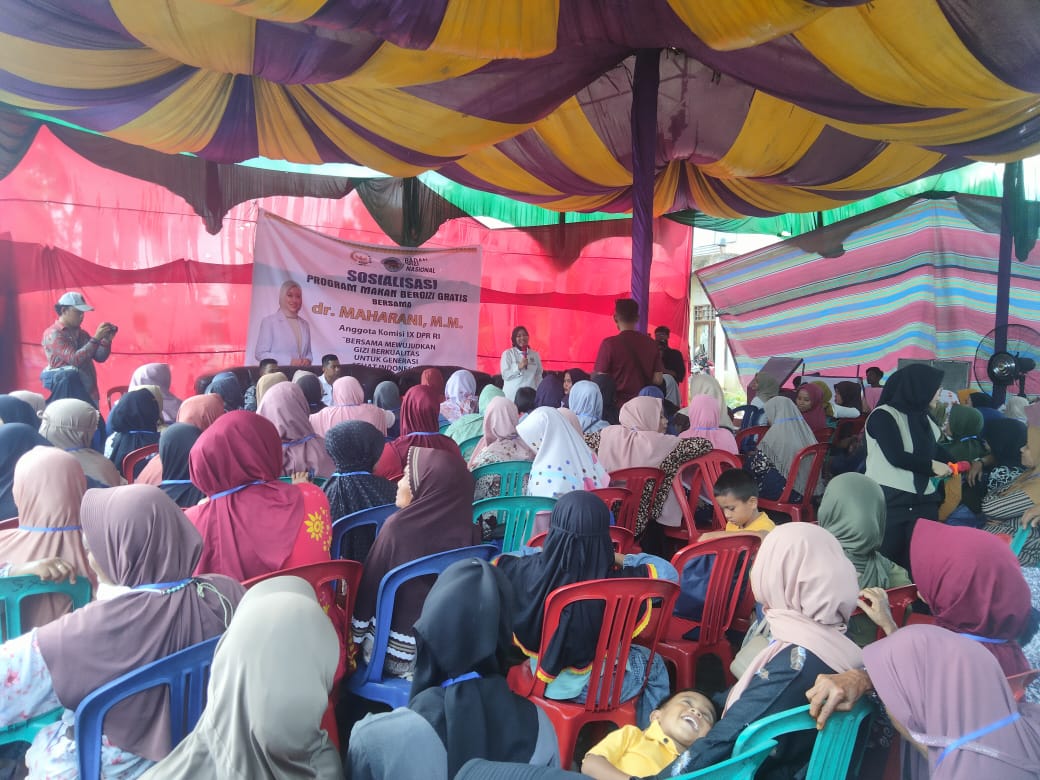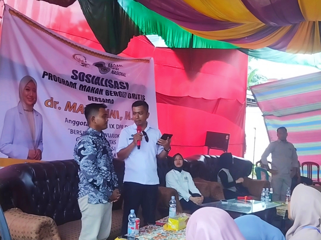 Anggota DPR RI Fraksi Partai Golkar Dr Maharani kali ini didampingi Tim dari Direktorat Promosi dan Edukasi Gizi Nasional Robby A Iskandar S, S.T, M.T. Dihadiri kurang lebih 3 ratusan masyarakat, Turut hadir pula Pengelola SPPG ( Satuan Pelayanan Pemenuhan Gizi ) Kecamatan Tanah Putih Kabupaten Rokan Hilir bernama Boy.