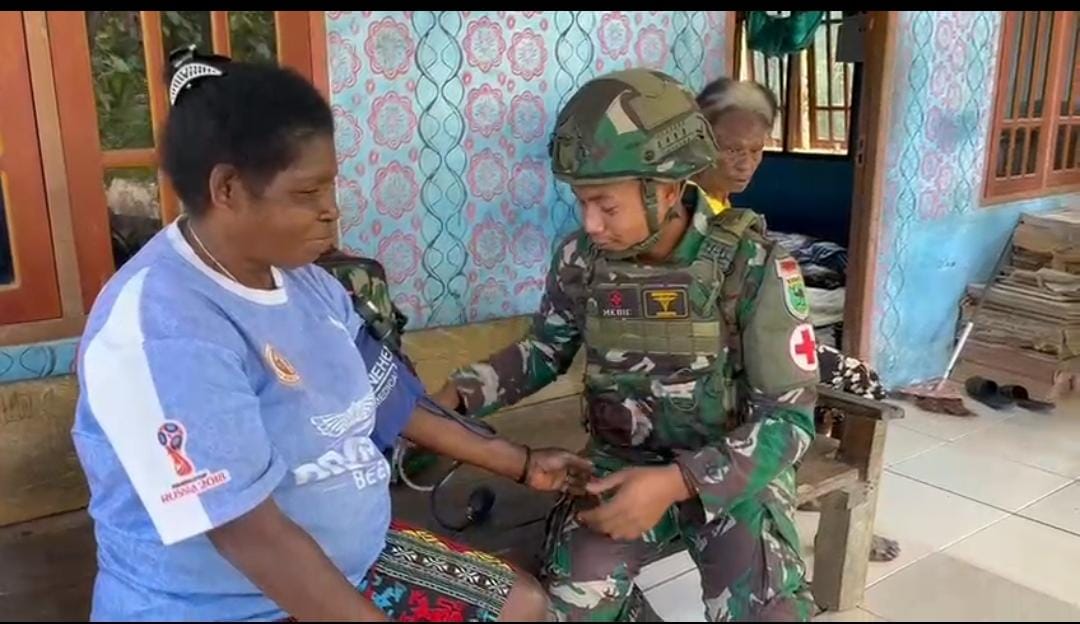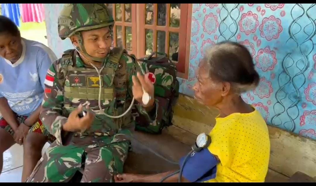 Bori, Kompas1net – Satgas Pamtas Kewilayahan RI-PNG Yonif 763/SBA terus memperkuat kedekatan dengan masyarakat melalui aksi nyata. Kali ini, para prajurit melaksanakan pelayanan kesehatan door-to-door bagi warga di sekitar Pos Bori. Kegiatan ini menyasar warga lanjut usia yang memiliki keterbatasan akses menuju fasilitas kesehatan formal. (22/2/2026)