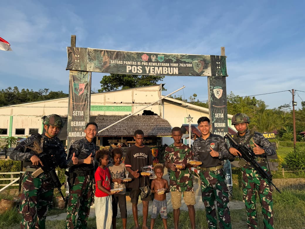 Tambrauw, Kompas 1 net – ‎Satgas Pamtas RI/PNG Kewilayahan Yonif 763/SBA Pos Yembun melaksanakan kegiatan pembagian takjil kepada masyarakat di Kampung Metnayam, Distrik Yembun, Kabupaten Tambrauw, Provinsi Papua Barat Daya.(5/3/2026).