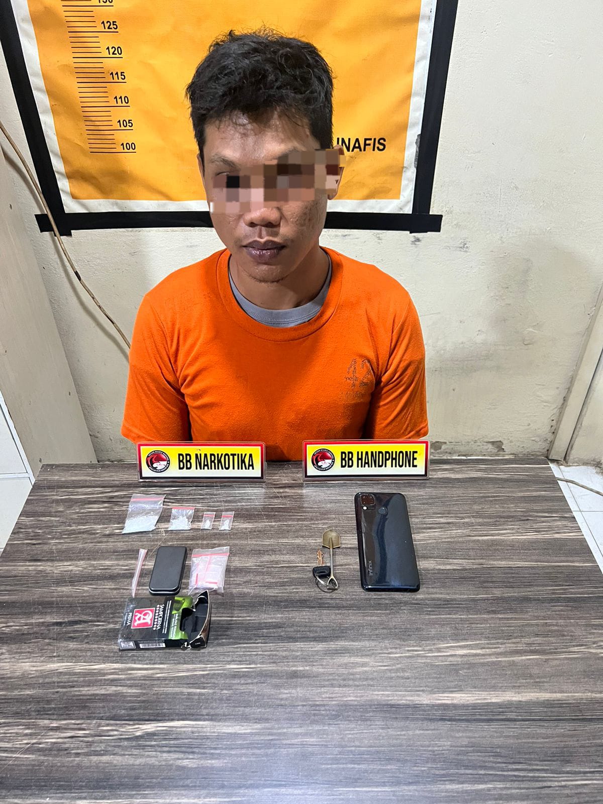 Selain itu, turut diamankan satu unit handphone dan satu unit sepeda motor yang diduga digunakan dalam aktivitas peredaran narkotika.