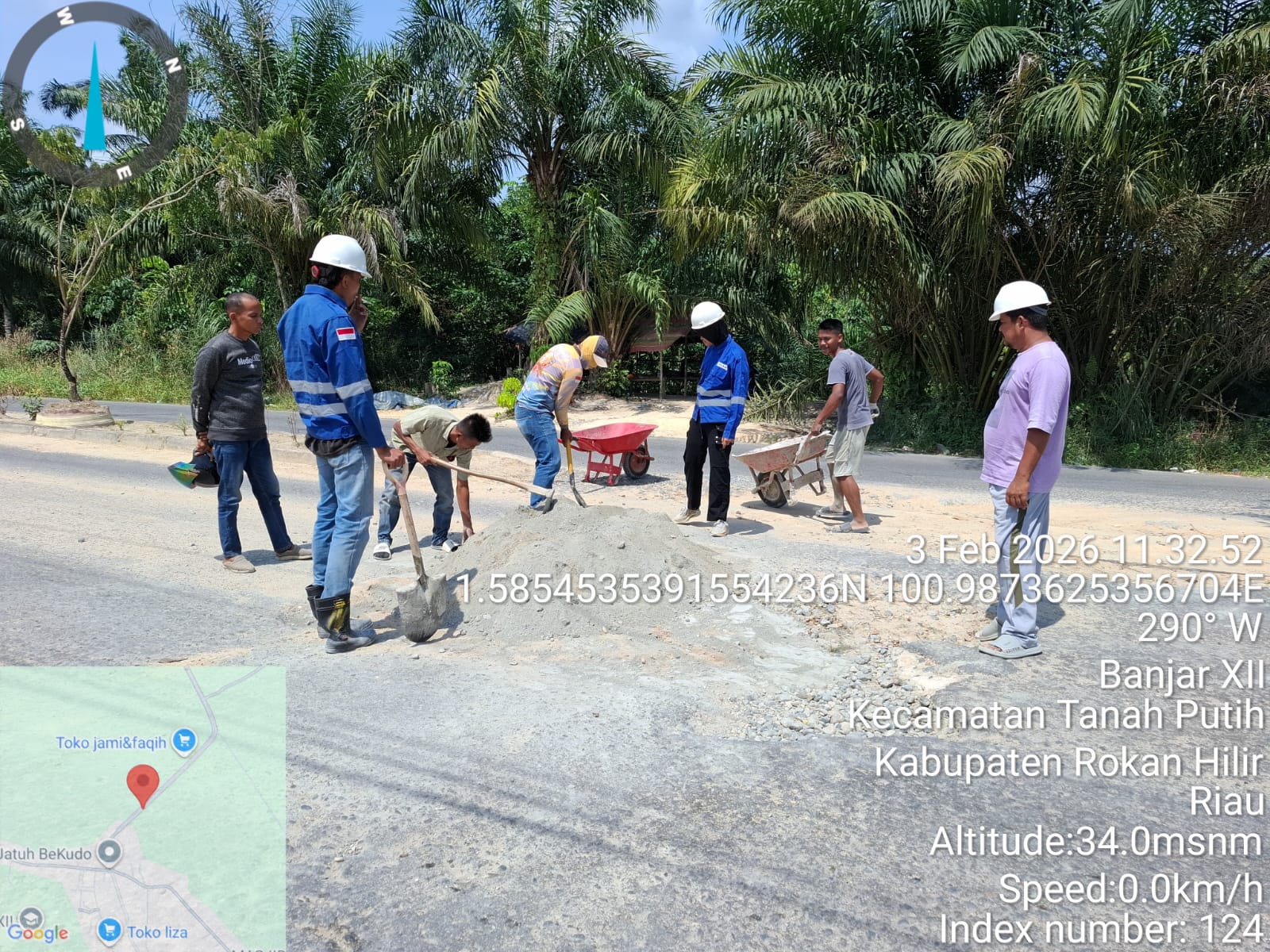 Tepatnya pada hari ini Selasa 3 Februari 2026, Dirut PT RMP Simanzen bersama para karyawan menimbun bagian jalan yang rusak dengan coran sirtu dan semen. Upaya ini dikatakan dia sebagai bentuk komitmen dan bakti sosial terhadap tetap terpeliharanya kondisi jalan tersebut.