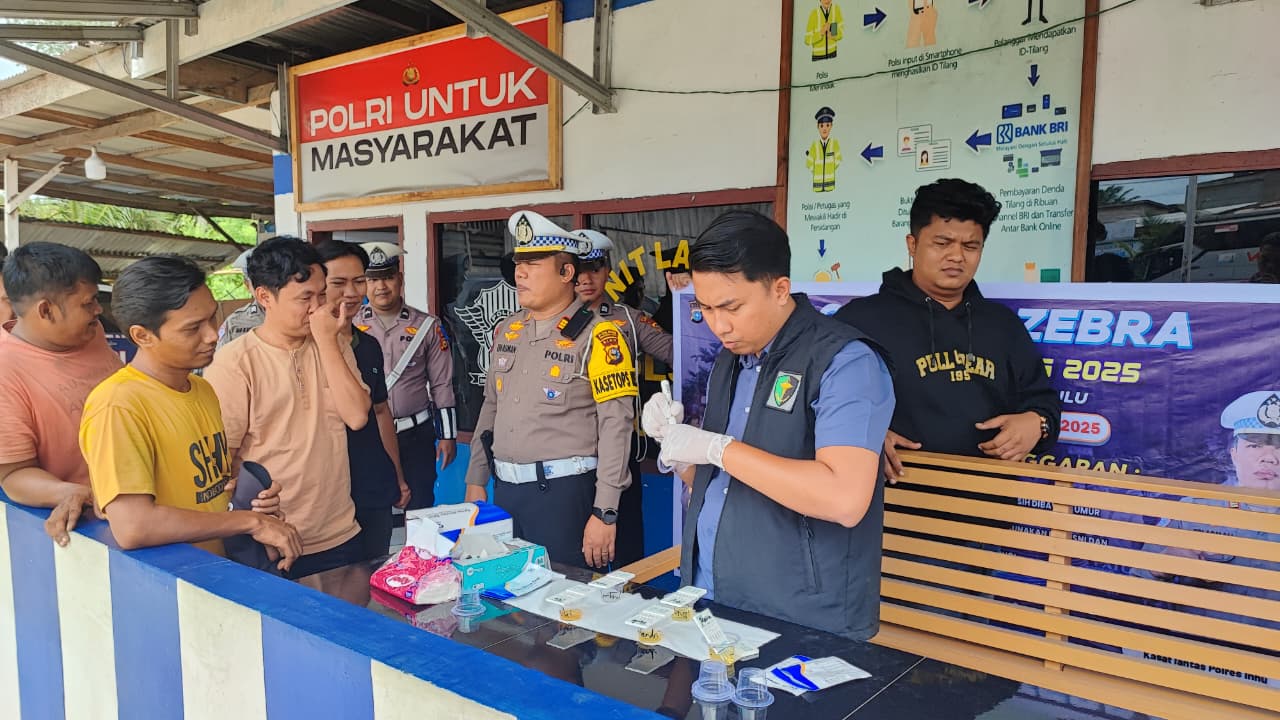 INHU,Kompas 1 net – Sebagai upaya menekan angka Kecelakaan Lalu Lintas (Laka Lantas) bersempenaan juga dengan Operasi Zebra Lancang Kuning (LK) 2025, Satuan Lalu Lintas (Satlantas) Polres Indragiri Hulu (Inhu) melakukan pemeriksaan atau tes urine terhadap puluhan sopir kendaraan angkutan barang dan kendaraan angkutan orang.