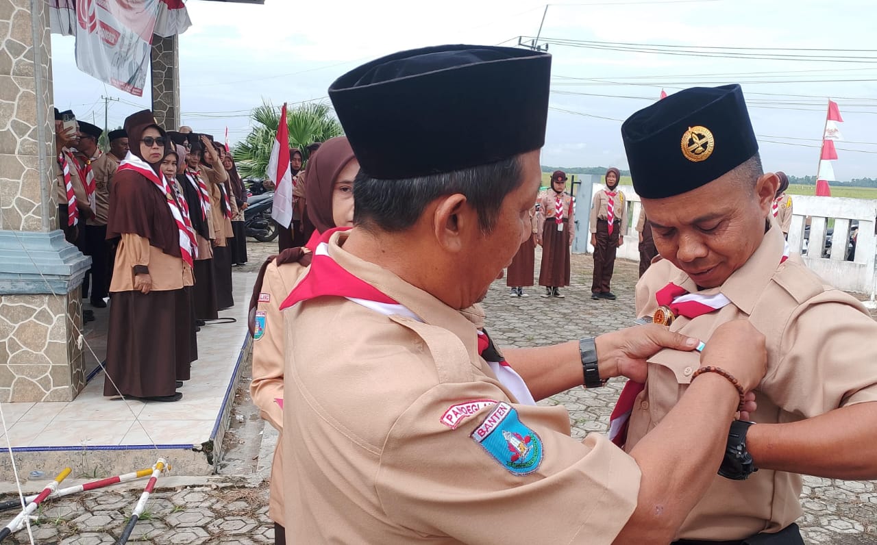 Pandeglang, Kompas 1 net – Tepat pada peringatan Hari Pramuka ke-64 Tahun 2025, Kamis (14/08/2025), Serka Dede Suharsono, Babinsa Koramil 0111/Pagelaran Kodim 0601/Pandeglang, menerima penghargaan Lencana Pancawarsa I melalui Surat Keputusan Kwartir Daerah Gerakan Pramuka Banten Nomor 20 Tahun 2025. Penyematan dilakukan oleh Camat Patia selaku Ketua Majelis Pembina Ranting (Mabiran), Supratman, S.Pd.