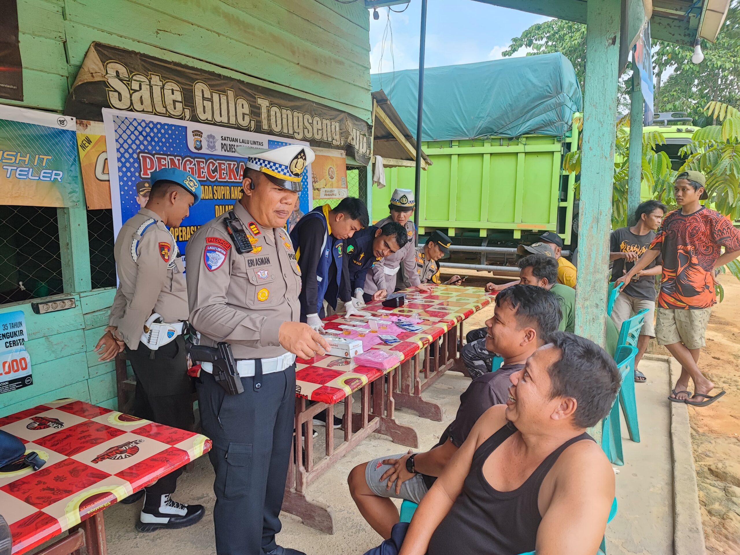 Kegiatan dalam rangka Operasi Keselamatan Lancang Kuning (LK) 2025 tersebut dilaksanakan Sabtu 15 Februari 2025 siang, didepan salah satu rumah makan, Jalan Lintas Timur (Jalintim), Desa Talang Jerinjing, Kecamatan Rengat Barat.