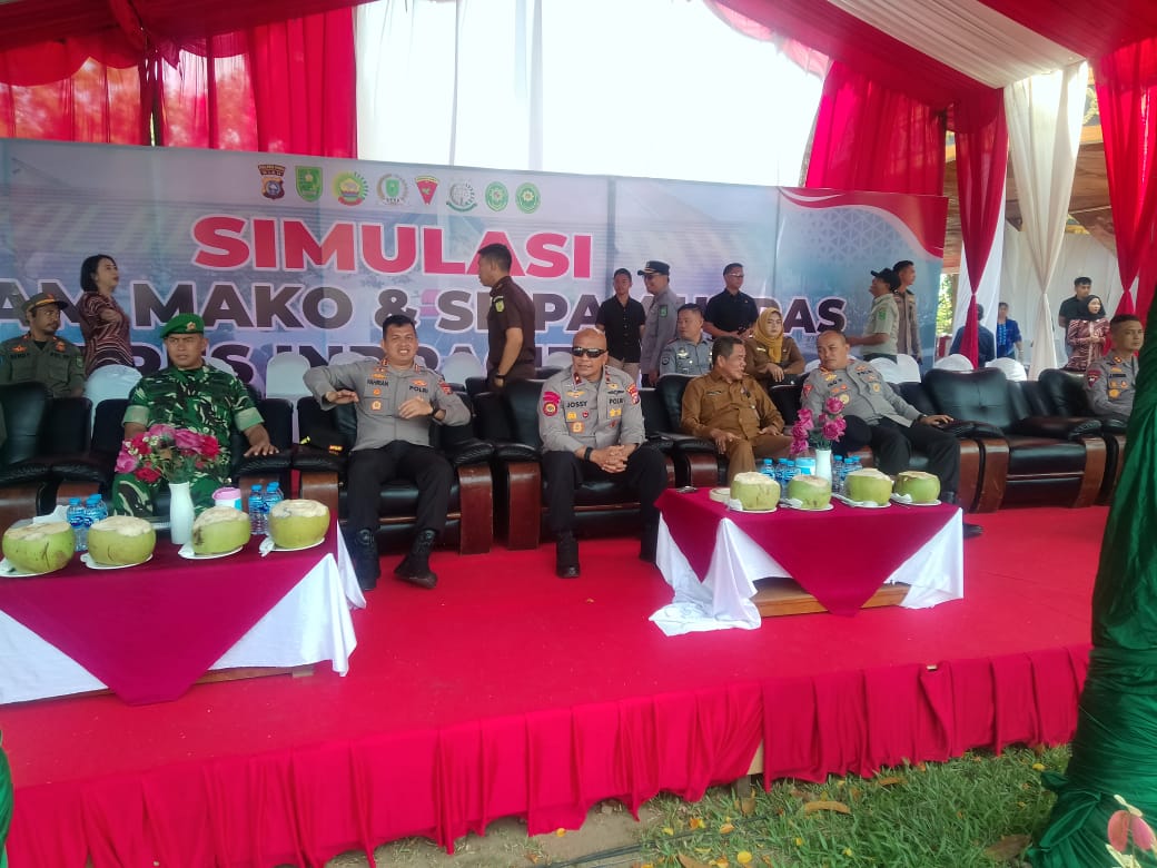 acara simulasi sispam Mako dibuka langsung oleh Wakapolda Riau Brigjen Andrianto Jossy Kusumo, yang hadir bersama sejumlah pejabat utama Polda Riau. Simulasi ini digelar sebagai bentuk kesiapan jajaran Polres Inhu dalam menghadapi potensi gangguan keamanan, baik yang terjadi di lingkungan markas maupun dalam situasi unjuk rasa di wilayah hukum Polres Inhu.