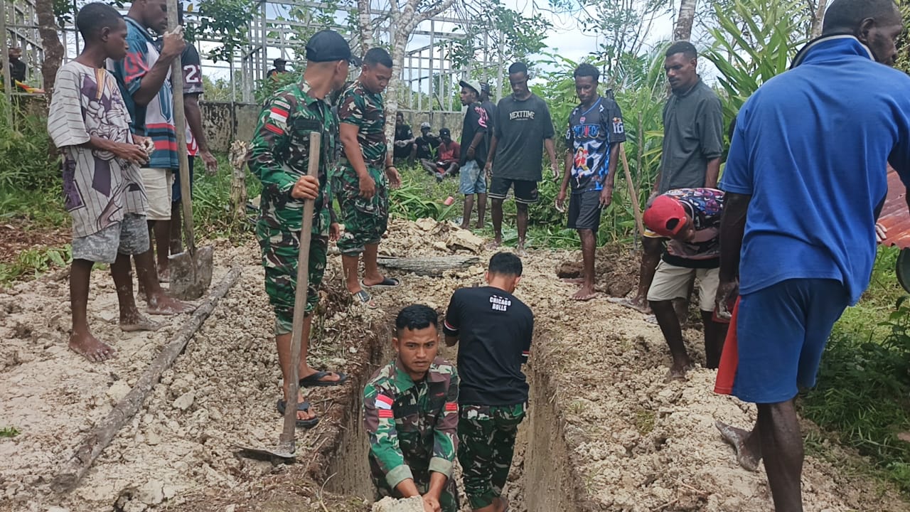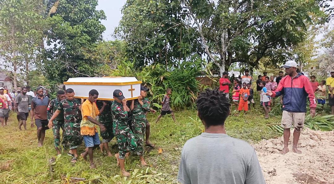 KAIBAR, PAPUA SELATAN, Kompas 1 net — Pos Kaibar Satgas Yonif 123/Rajawali menunjukkan kepedulian dan kedekatan dengan masyarakat pedalaman Papua dengan turut membantu prosesi pemakaman salah satu warga Kampung Amazu, Distrik Kaibar, Kabupaten Mappi, Papua Selatan, pada Selasa (06/01/2026).